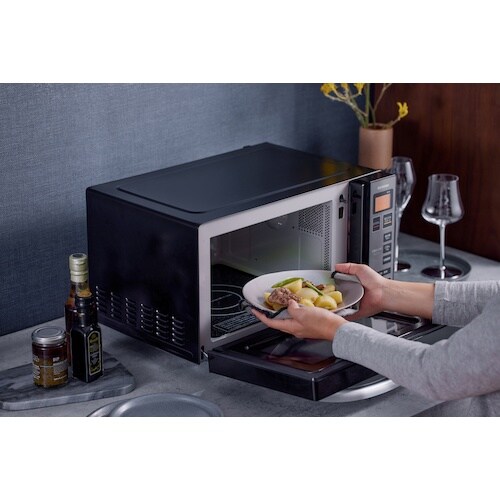 インテリアと調和するミラーガラス調のデザイン電子レンジです。庫内灯付きであたための様子が確認でき、しっかりと映る高い反射率です。あたため・調理に。 |