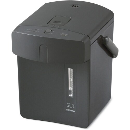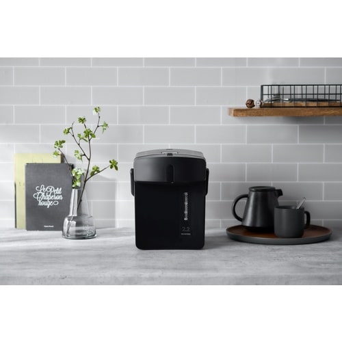 角型を基調としたスタイリッシュなデザインのジャーポットです。丸型デザインよりスリムでコンパクトに見えるデザインです。再沸とう機能付きで、ボタンを押せば保温中のお湯が再沸とうします。 |