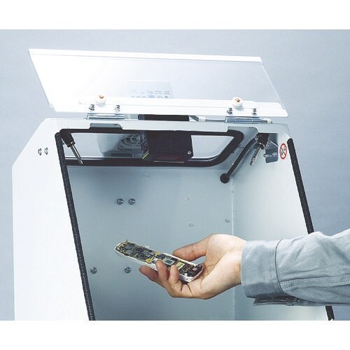 イオン洗浄と集じんで作業性を大幅にアップさせます。作業台と小型集じん機を一体化した静電気除去装置付小型集じんユニットです。光電センサーにより自動でエアを噴射します。シルク印刷前の除電除じん。 |