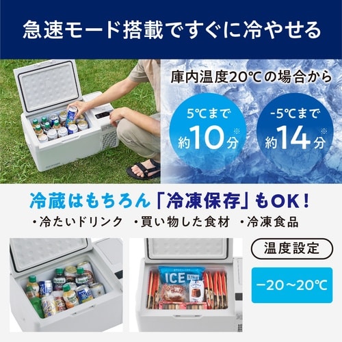 様々な場所で使用しやすい落ち着いたカラーのポータブル冷蔵冷凍庫です。充電バッテリー仕様のためコンセントがない場所でも使用できます。 |