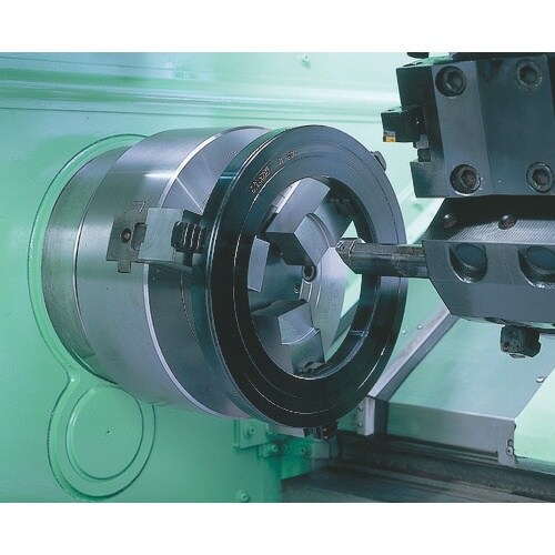 無段階微調整により生爪消耗を最小限に抑えます。小径把握の生爪成形に非常に便利です。生爪の通り抜け加工に威力を発揮します。爪の取り付け方向を逆にすることにより加工範囲が拡大されます。 |