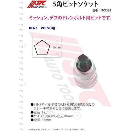 BENZやボルボ等のATE−GIRINGBENDIX製のブレーキの取外し等に使用します。BENZやボルボ等のATE−GIRINGBENDIX製のブレーキの取外し等に使用します。 |