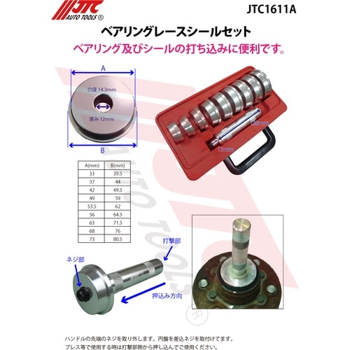 各種整備用途にお使いいただけます。ベアリングを均等に打ち込む工具です。ベアリングのサイズに合わせてアタッチメントを選びハンドルを付けます。 |