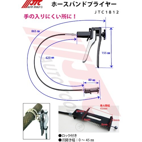 各種整備用途にお使いいただけます。ワイヤーによる遠隔操作で、従来のプライヤーが入り込めない箇所での作業が可能です。狭く手の届かない様な作業性の悪い箇所にあるホースクランプを取り外します。 |