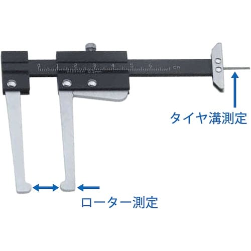 各種整備用途にお使いいただけます。タイヤ残り溝も測定出来ます。測定しづらいブレーキローターの摩耗をキチンと測定出来ます。ローターエッジの逃げが有るので摩耗したローターも正確に測定出来ます。 |