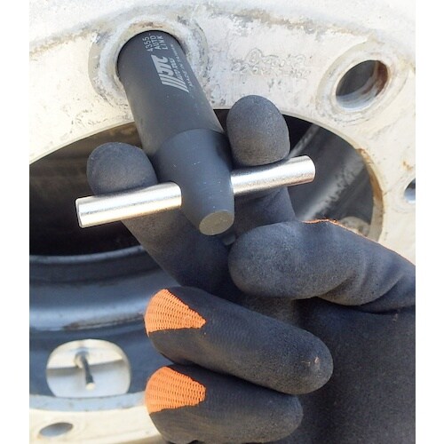 新ISO規格用ホイールのセンター出しが簡単です。ワンタッチ装着、内部ネジ無しタイプ 差込式です。大型車に採用されるISO規格のホイール脱着時にハブボルトに装着してハブボルトを保護できます。 |