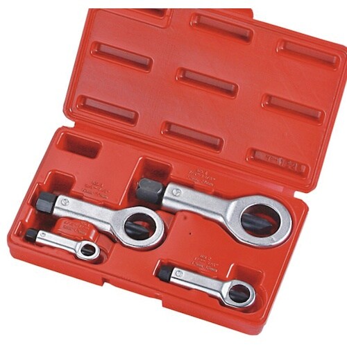 ナメてしまったり固着して取り外しが困難なナットに割りを入れる事で結合を弱め取り外しを可能にする特殊工具です。錆びついて回らないナットやなめてしまったナットを切断するナット割りです。 |
