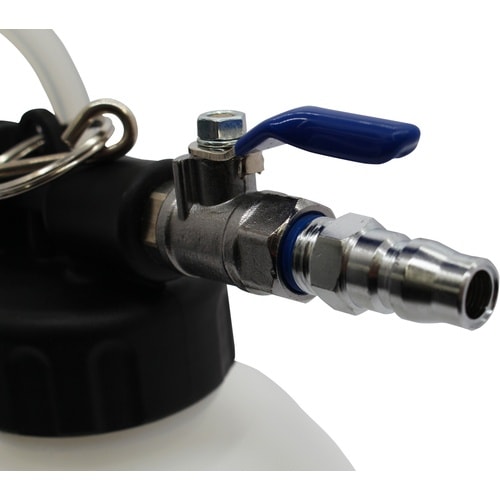 コンプレッサーの圧縮空気を利用してタンク内に負圧を作り、ブレーキフルードを抜き取ります。