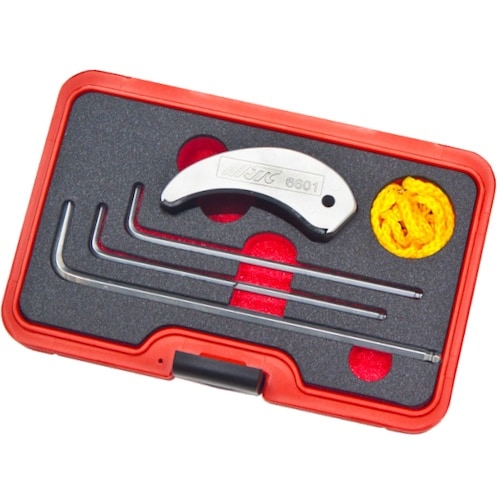 各種整備用途にお使いいただけます。補機ベルトとウオーターポンププーリーの間に差込みオートテンショナーを動かし固定します。 |