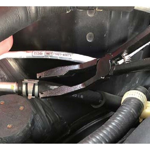 奥まった場所に 縦でも横でもはさめる 燃料ホースやヒーターホース等の小型スプリングバンド用