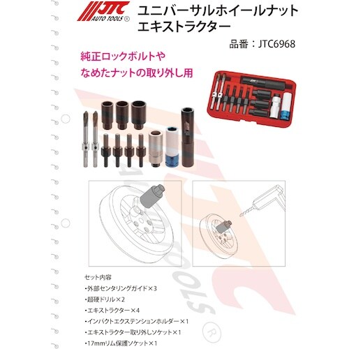 JTC Auto JTC ユニバーサルホイールナットエキストラクター JTC6968 1個 A04P-3703