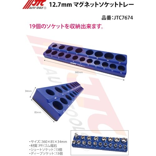 各種整備用途にお使いいただけます。19個のソケットを収納できます。 |