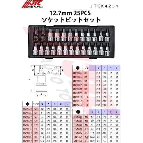 JTC Auto JTC 12.7mm 25PCS ソケットビットセット JTCK4251 1S A04P-4064