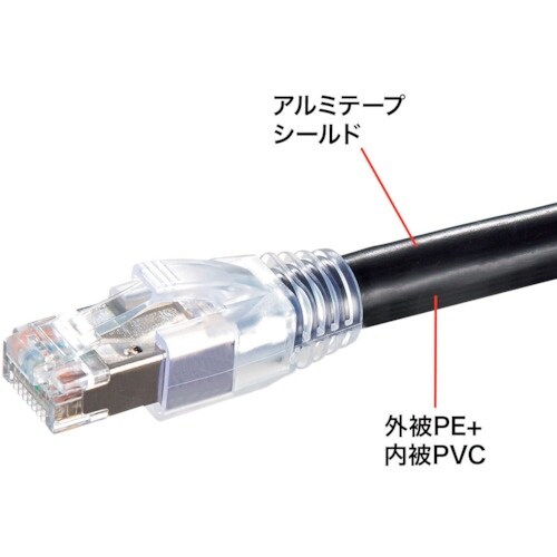 ケーブル構造がPE(ポリエチレン)外被、PVC(ポリ塩化ビニル)内被の二重被膜構造で、耐水性、耐UV性にも優れ耐候性を高めています。 |