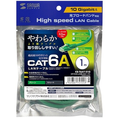 エンハンスドカテゴリ5の5.0倍、カテゴリ6の2.0倍の伝送帯域500MHzを実現しています。余裕の伝送特性でエラーを防ぐ高性能カテゴリ6A LANケーブルです。 |