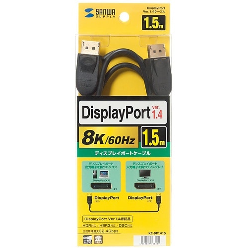SANWA DisplayPortケーブル 1.5m(Ver1.4) KCDP1415 1本