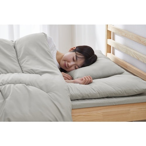 開けてすぐに使えるセット内容のマットレス付き布団5点セットです。掛け布団は身体にフィットし、保温性が高く快適です。敷き布団とマットレスを併せて使用することで、底付き感なくお使いいただけます。 |