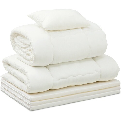 開けてすぐに使えるセット内容のマットレス付き布団10点セットです。寝心地をアップするマットレス付きです。使用しない時はコンパクトに折りたためます。 |