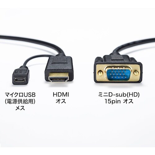 パソコンのHDMI出力をVGAに信号変換するアダプタケーブルです。 |