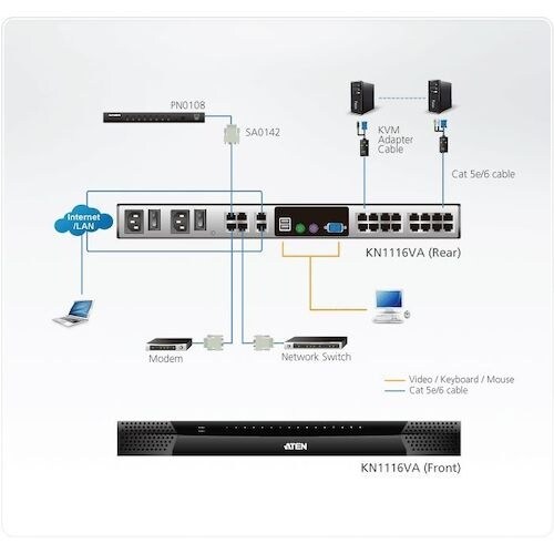 ATEN IP−KVMスイッチ1ローカル/1リモートアクセス/16ポート/バーチャルメディア対応、1920×1200 KN1116VA 1台