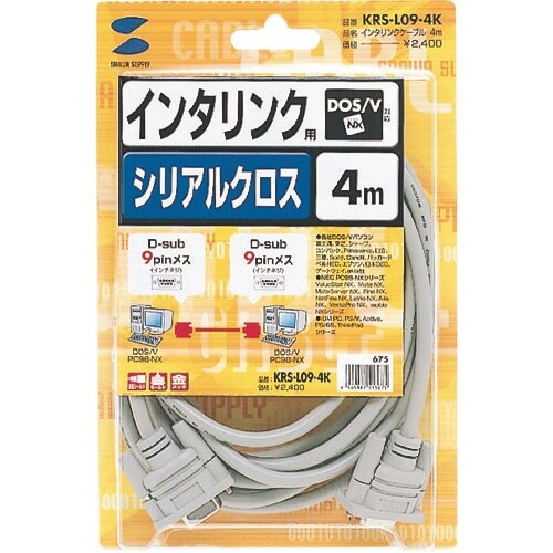 インタリンク用シリアルクロスケーブルです。DOS/Vパソコンのシリアルポート(D−sub9pin)同士を接続し、データ転送をするためのケーブルです。 |