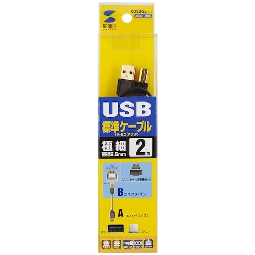 サンワサプライ SANWA 極細USBケーブル KU20SL20BKK 1本 A04P-5527
