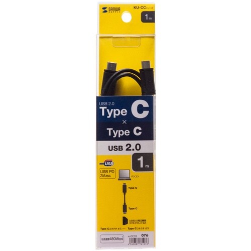 USBタイプCのUSB2.0ケーブル1mブラックUSB認証取得品です。両面させるUSBType−C(タイプC)コネクタ採用コネクタの表・裏を気にせず使えるUSBタイプCコネクタを採用しています。 |