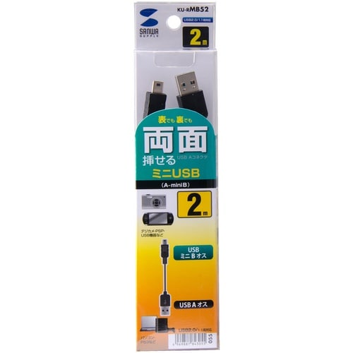 USBAコネクタの向きを気にせず挿せるミニUSBケーブル(ミニB)2m黒です。両面挿せるUSBAコネクタ採用USBAコネクタ(オス)の表・裏を気にせず「両面挿せる」USBケーブルです。 |