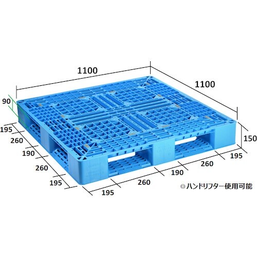 日本プラパレット NPC プラスチックパレットLAー1111 片面四方差し 青 LA1111 1枚 A04P-5851