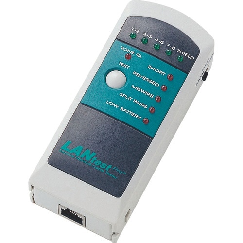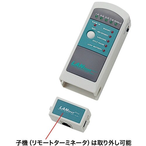 ケーブル試験とトーンジェネレータが一つになったLANケーブルテスターです。ケーブルの結線状態はケーブル長、結線(ショート・断線・結線ミス)、ペア配線の整合性チェック可能です。 |