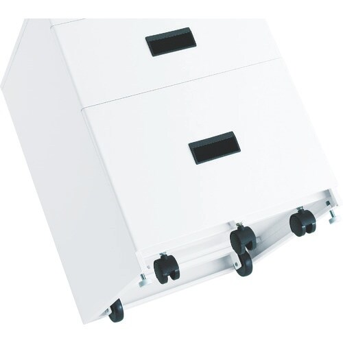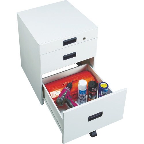 深さの異なる3段キャビネット付です。 |