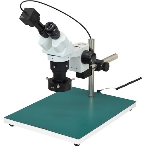 お手頃・対物レンズ切換式とカメラで確認・保存大きい観察対象に最適(リング照明付)1×/2×切換式対物レンズの価格を抑えた実体顕微鏡と、堅牢で取付ネジを多数備えた500万画素USBカメラのセットです。 |