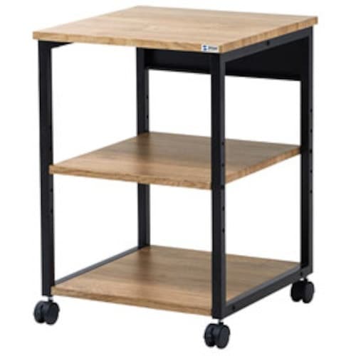 木目調が優しい雰囲気を演出するプリンタースタンドです。W500mm×D500mmでレーザープリンターの設置にも対応できます。中棚は収納物に合わせて5段階の高さ設定ができます。 |