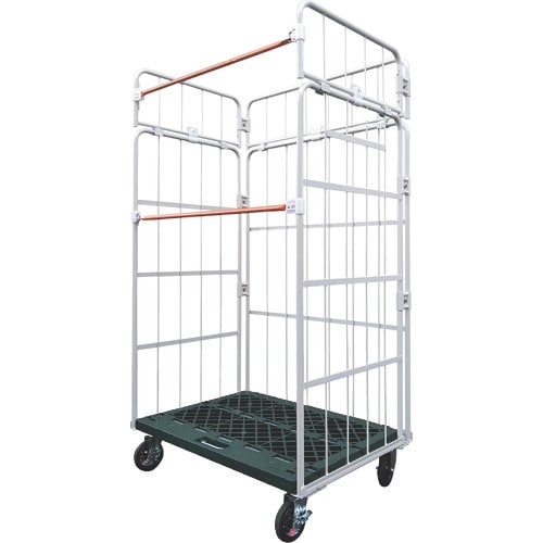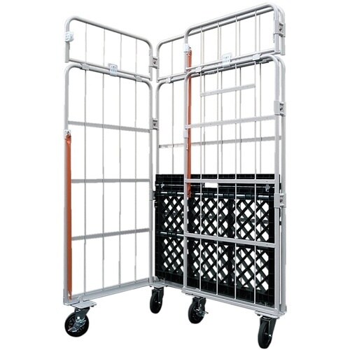 従来品H1700mmを嵩上げ、H2000カゴ車です。積載量20%アップします。サイドバー2本タイプで上部荷崩れ対策しています。