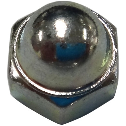 六角ナットの方向に半球のキャップを溶接しています。小ねじの先端が現れないように片面帽子状にしているので、美観に優れており化粧ナットとして。