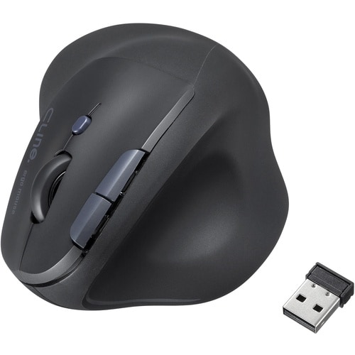 ■横から軽く手首をひねらず手を添えて使用できる、手首にやさしいエルゴノミクスデザインのマウスです。■自然な角度でにぎることができるので、長時間使用しても手首に負担がかかりません。 |
