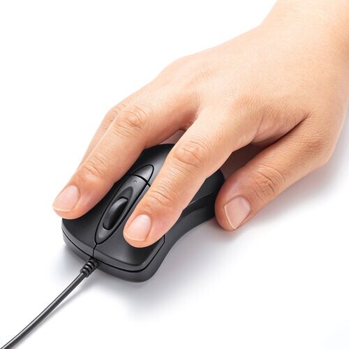 ■指にフィットする形状で持ちやすい、小型サイズの有線マウス”iO+(イオプラス)”です。■全てのスイッチに静音スイッチを搭載しており、公共の場や会議中の操作などでの使用に便利です。 |