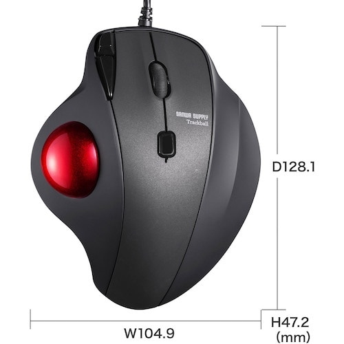指でボールを転がしてカーソルを操作する、トラックボールです。力まずリラックスした状態で使用できる、親指操作タイプです。手のひらを軽く添えるだけでフィットするエルゴノミクス形状です。 |