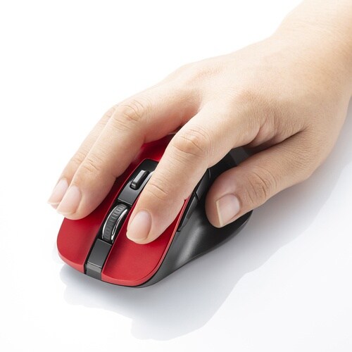 ■握りやすい形状で中型サイズのワイヤレスマウスです。■マウスポインタを動かさず手元のサイドボタンで操作できる「戻る・進む」の2ボタンを搭載しており、Webブラウザで操作をスピーディに行えます。 |