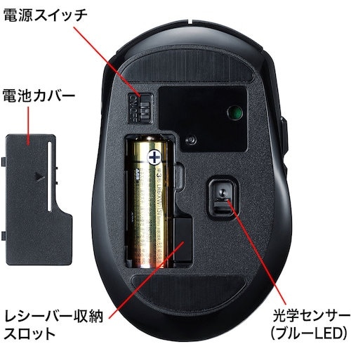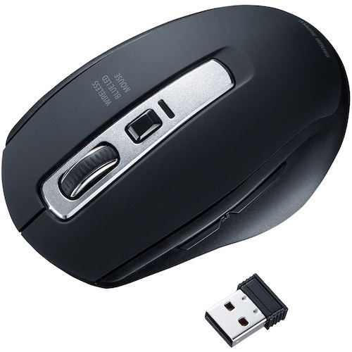 手のひらにフィットするワイヤレスBuleLEDマウスです。すすむボタンより戻るボタンを大きくしており戻るボタンが押しやすいデザインです。 |