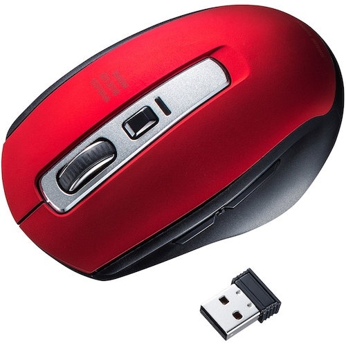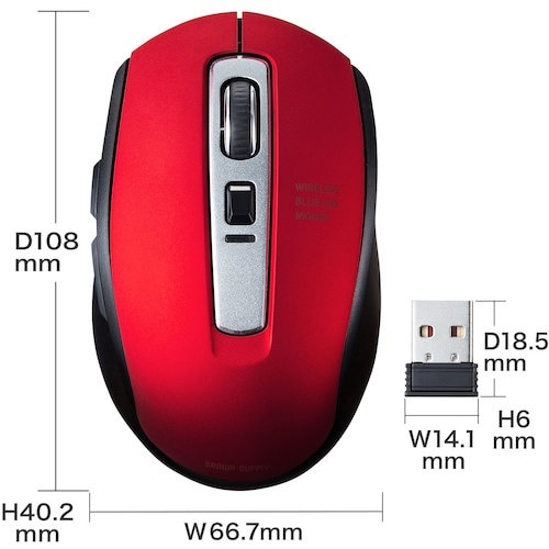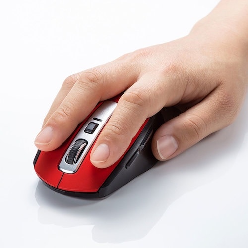 手のひらにフィットするワイヤレスBuleLEDマウスです。すすむボタンより戻るボタンを大きくしており戻るボタンが押しやすいデザインです。 |