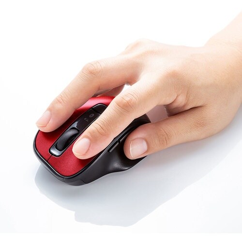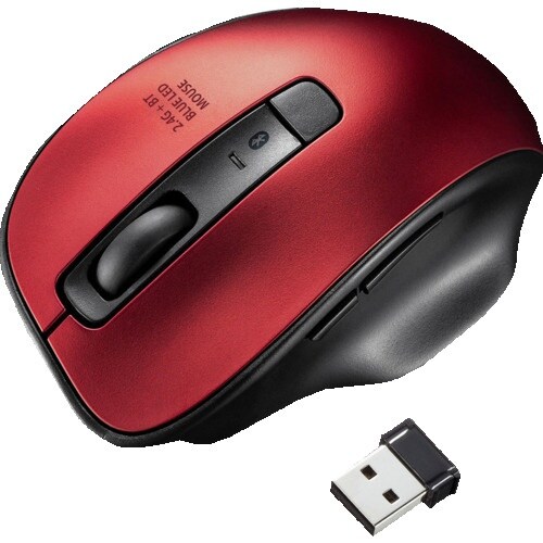 小さくても持ちやすい5ボタンBkuetooth+2.4GHzワイヤレスブルーLEDマウスです。Bluetoothと2.4GHz2種類の接続方法が選べるマウスです。 |