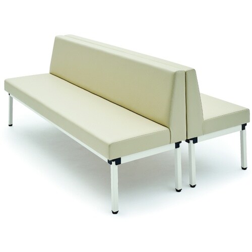 脚部をホワイトフレーム脚にすることで、チェアに清潔な印象を与えます。張材には抗菌性、アルコールメンテンナンスに優れた耐アルコール性を施しております。 |