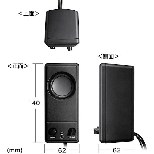 ■電源をUSBポートから供給するUSB給電方式のスピーカーです。AC電源を必要としないので接続が綺麗にでき、簡単に設置できます。 |