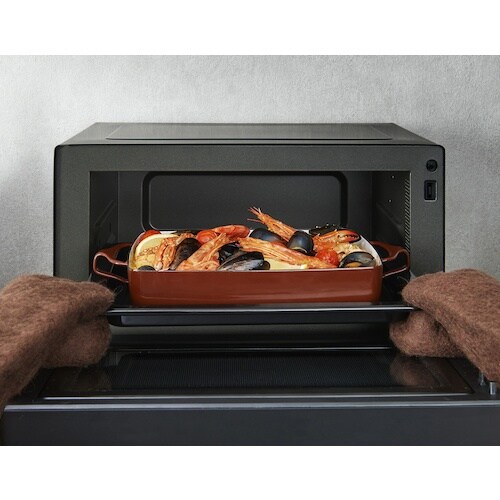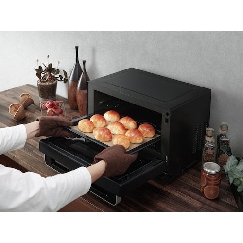 操作パネルを扉の下に設置することで横幅が広くなり使いやすいスチームオーブンレンジです。黒を基調としたスタイリッシュなデザインでキッチンにも馴染みます。 |