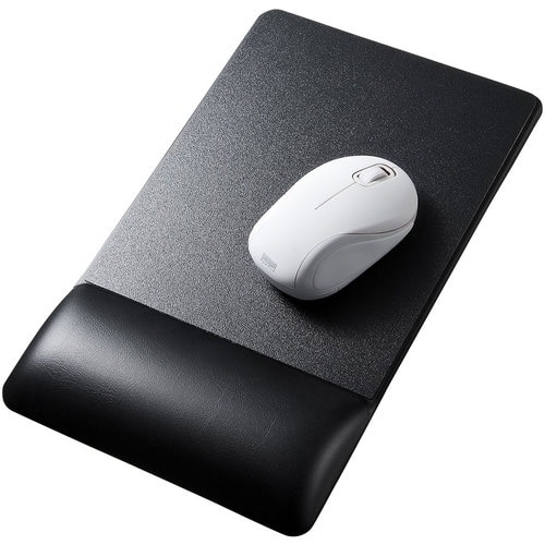 SANWA リストレスト付きマウスパッド(レザー調素材、高さ標準、ブラック) MPDGELPNBK 1個