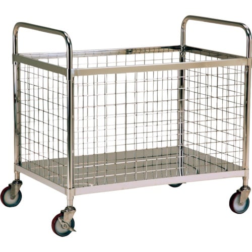 キャスター部を除く全ての部品はステンレス製(SUS304)ですのでサビや汚れに耐え清潔です。形状の定まらない不安定な物や製品の搬送でも金網付だから転落事故等を防止し安全・安心に搬送できます。 |