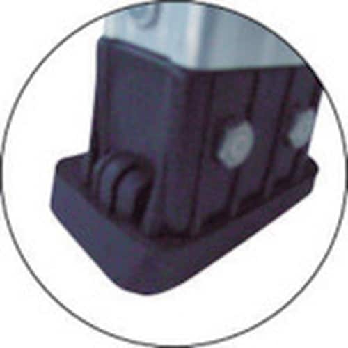強さ、安全性、作業性、保管性、4つの機能を兼ね備えた脚立です。赤いすべり止めモールが、すべりや踏み外しを防ぎます。天板およびステップには60mmの幅広タイプ+樹脂のすべり止めモール付です。 |
