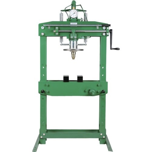 ベアリングやブッシュの脱着、曲げ作業、歪み取り作業など広範囲に使用できます。手動式油圧プレスです。ラム先端部はスクリューにより伸縮し、高さ調整が可能です。 |
