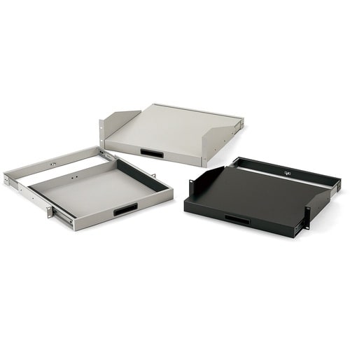 EIA規格のラックスライドテーブルです。補強金具が付いていますのでキッチリと固定できます。 |